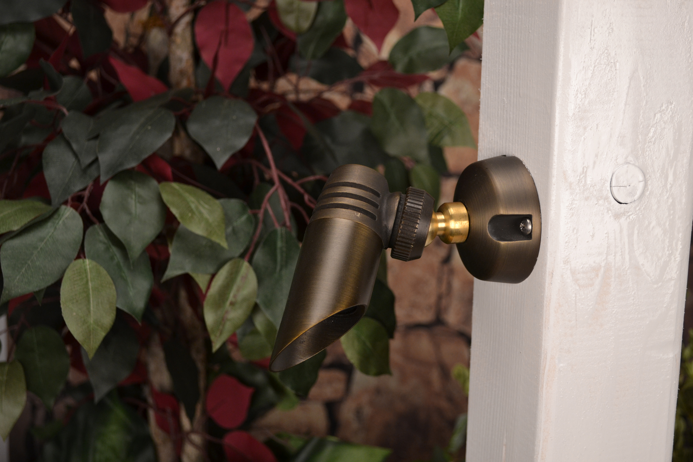 The Northstar is ideal when up-lighting is challenged by a small installation area. Featuring fully adjustable shroud the Northstar is enhanced by a revolutionary ball and joint swivel mount allowing a 360� rotation, thus giving 100% accuracy when dialing in the proper lighting angle. The petite die cast brass body houses a 20 Watt MR-11 Halogen bulb or a 20 Watt Astro-Brite with Astro Burner.